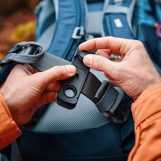 - Thanks to the new “2 in 1” attachment now also for shoulder straps