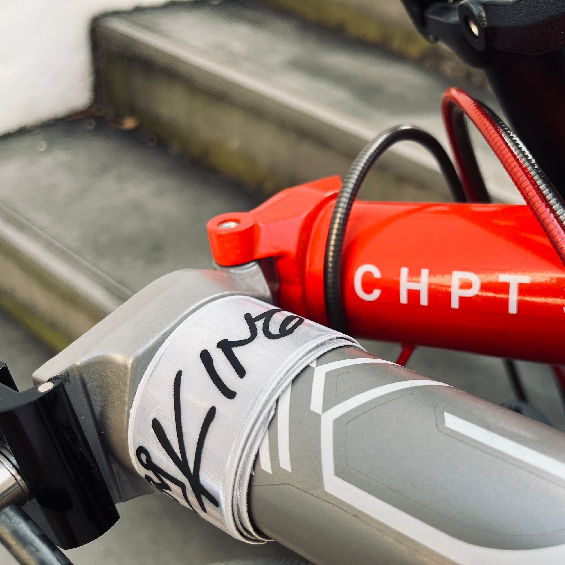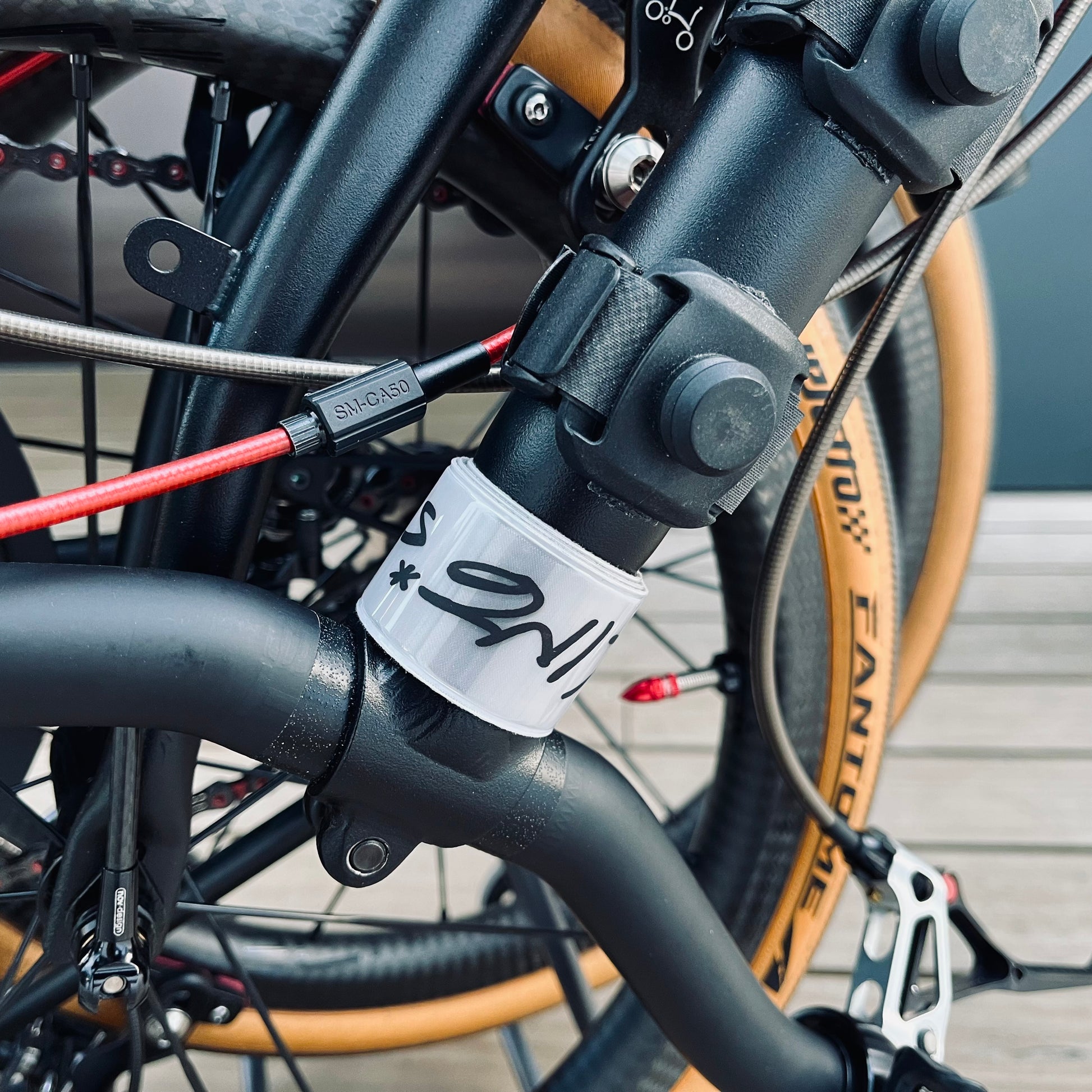 King's Workshop® 自家設計的一個小小產品 —— Wrap Strap。膠帶可以捲在車身任何圓柱的位置,背面為絨毛質料,不會刮花車身。正面物料具有反光作用,亦達歐盟標準 EN13356:2001。掛上後,當夜間行駛,可額外多一重保障。