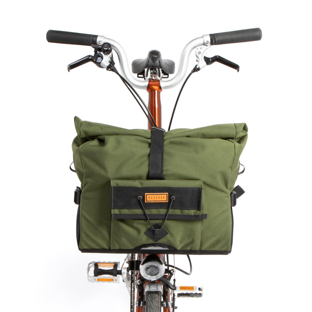The bag is mounted via a BROMPTON front carrier block compatible fitting, both external and internal stiffeners enable the bag to hold its shape even when fully loaded. Made of 100% waterproof textured nylon with a tape sealed lining, spare clothes and tech are guaranteed to stay dry on the wettest of rides.