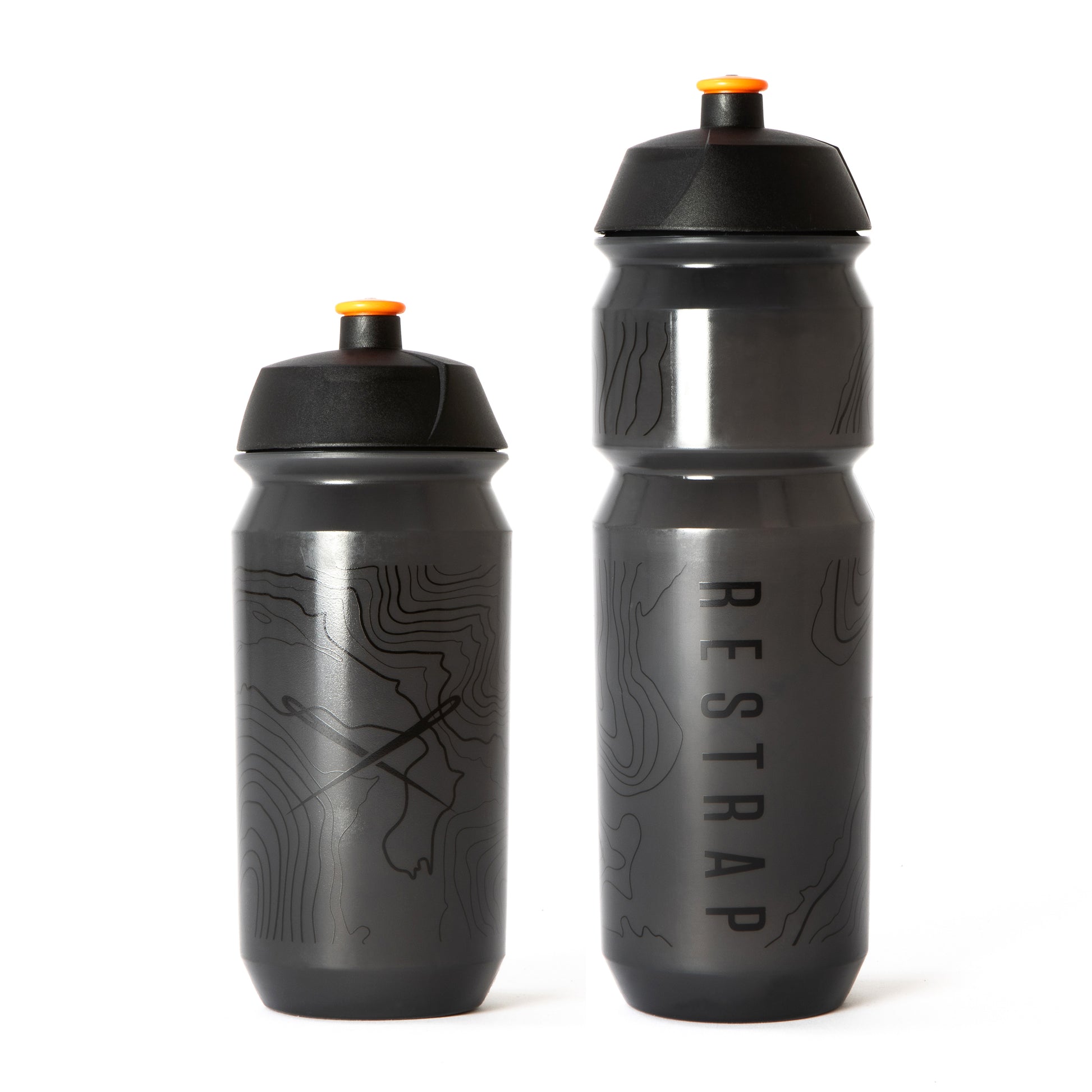 Restrap Branded Bottles with contour design, available in both 500ml and 750ml sizes.