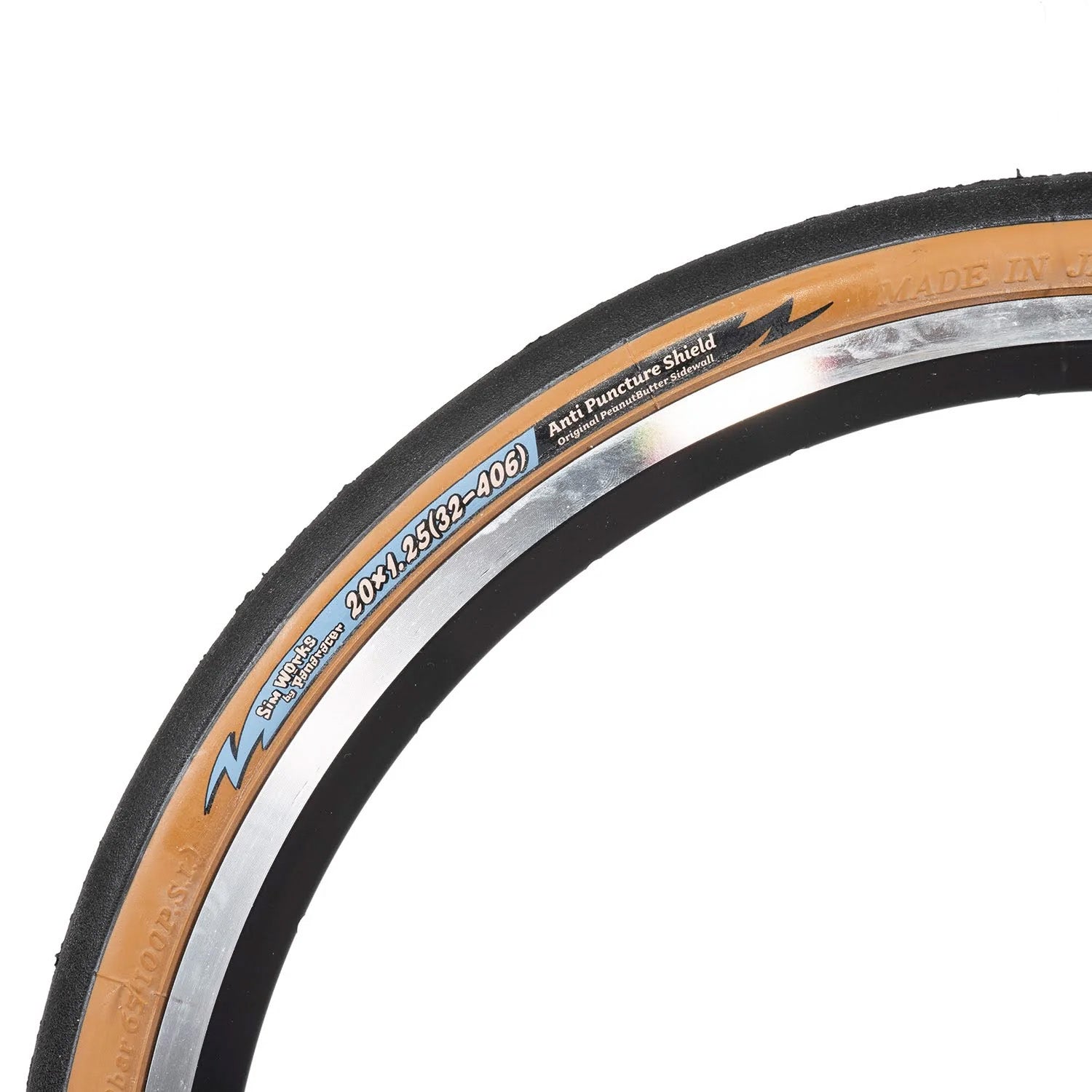 What worries many small wheel cyclists is the high risk of punctures due to the small wheel diameter. You want to reduce the risk of punctures as much as possible, not only when going over bumps in the city, but also when touring while traveling (portable). Potter tires feature Panaracer's Pro Tite Shield, a puncture-resistant shield that covers the tread surface and sides, reducing the risk of penetrating punctures. Additionally, SimWorks original Peasnut Butter sidewalls are designed to reduce the risk of side cuts.