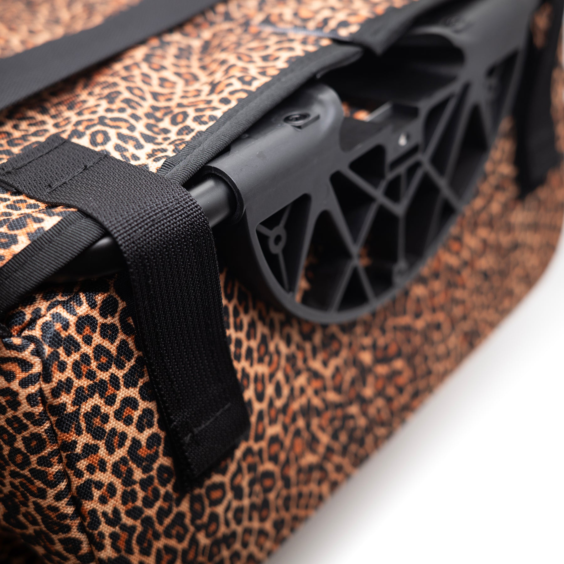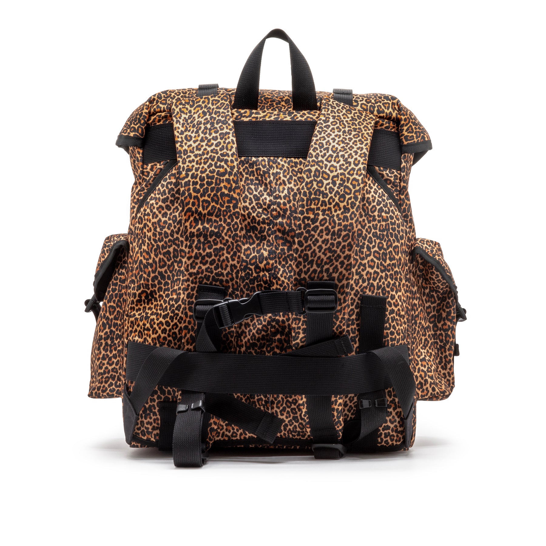 This rucksack can be attached to a BROMPTON. It has a nostalgic design with a lid for the main cargo compartment and each of the three outside pockets.