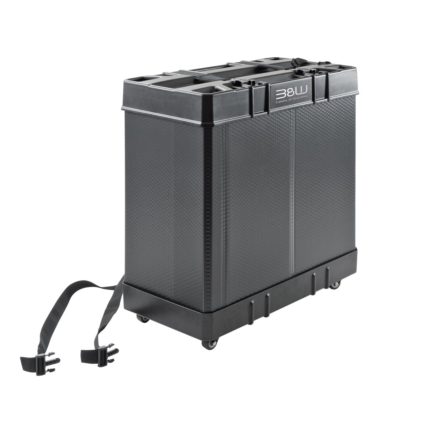 Whether for short journeys or long flights, Brompton bikes are always perfectly stored in our foldon.box S. Four integrated wheels - two freely rotatable through 360°, two fixed - make transport and handling particularly easy. The padded handles make it easy to carry or pull the box, even at maximum weight.
