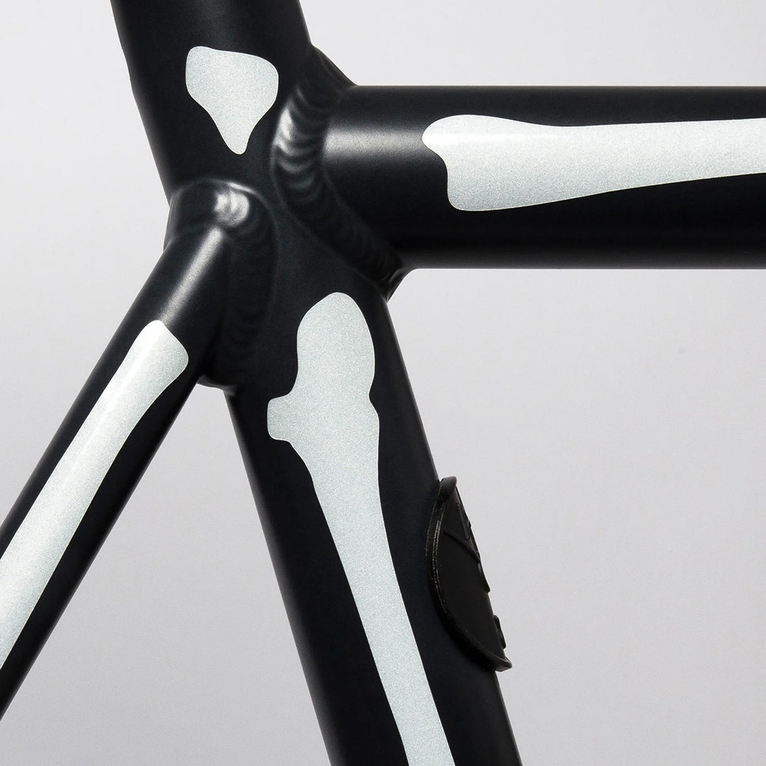Reflective Bone Stickers for your bike or helmet. Each set includes 13 pieces of high visibility reflective stickers in our unique bone pattern.