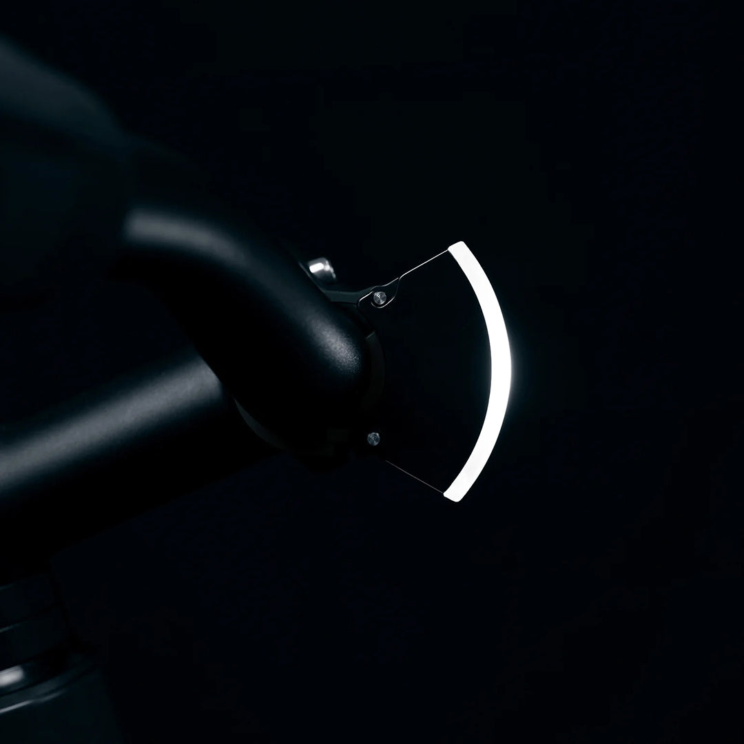 The design of the glass, which spills over the sides, ensures a wide range of light, not only in front of the cyclist but reflects off to the sides. This results in cyclist peace of mind that the light provides them with clear visibility of the roads as well as being visible to other travelers at 180 degrees around them.