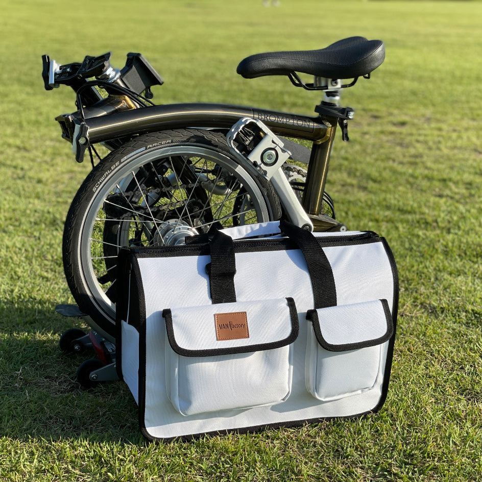 This bag can be directly installed on the BROMPTON Front Carrier. Built-in aluminum alloy bracket to ensure sturdiness and durability. Designed and manufactured by Korean craftsmen with decades of experience. There are breathable mesh fabrics on both sides, even if the top zipper is pulled up, you can keep your pet cool. The inner also has been carefully designed. In order to take care of your pets, it is equipped with a safety belt and several pockets - you can add a freezer/warm bag to freely adjust the suitable temperature for your Pet. There are two exposed pockets on the front, where you can put your personal belongings or supplies/food. Also have two pockets with ropes on the back of the bag, which can be used to place water bottles and so on.
