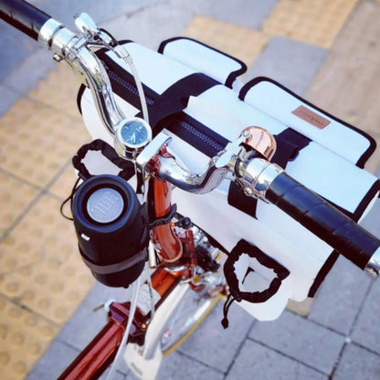 此袋款可以直接安裝上 BROMPTON Front Carrier(豬鼻),內置鋁合金製支架,確保堅固耐用,經過精心設計並由具有數十年經驗的韓國工匠製造。兩邊有透氣孔網布,就算拉上頂端的拉鍊,也可以讓您的寵物保持通爽。內籠經過精心設計,為了對寵物的照顧,設有安全帶,幾個暗格 - 可以添加冷凍包 / 暖包,為您的竉物自由調節適合溫度。前面有兩個明袋,可放置隨身物品或者竉物的用品/食物等。袋身後方備有兩個附有索繩的袋格,可放置水壺等。